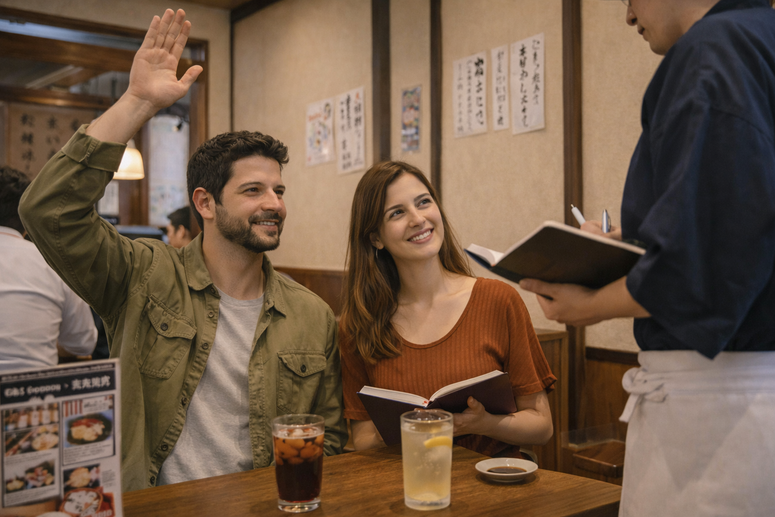 Levantar a mão e dizer “sumimasen” é suficiente.